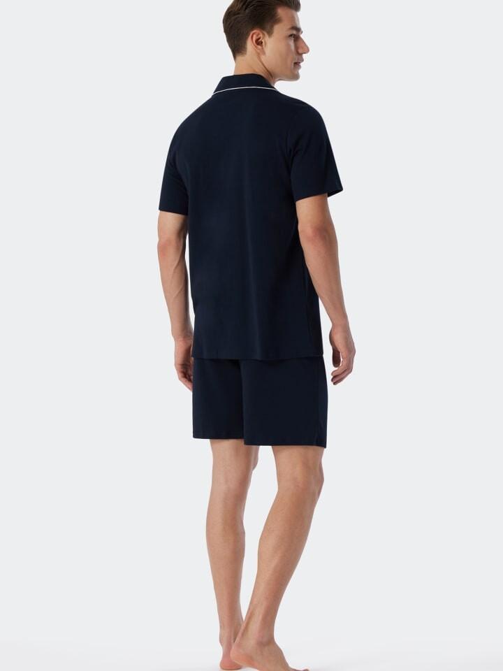 Эта короткая темно-синяя мужская пижама исполнит все ваши желания! Благодаря узкому крою, белой окантовке и нагрудному карману оно излучает чистую элегантность. Мягкий интерлок из 100% хлопка обещает высокий уровень комфорта. Таким образом, ничто не помешает расслабляющим ночам в лучшем качестве SCHIESSER!