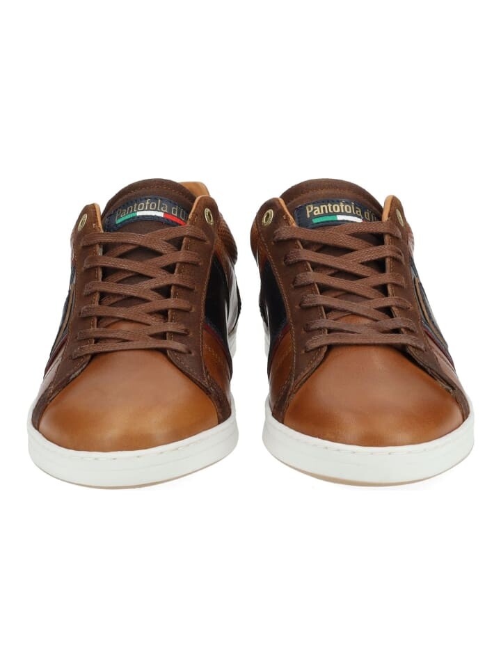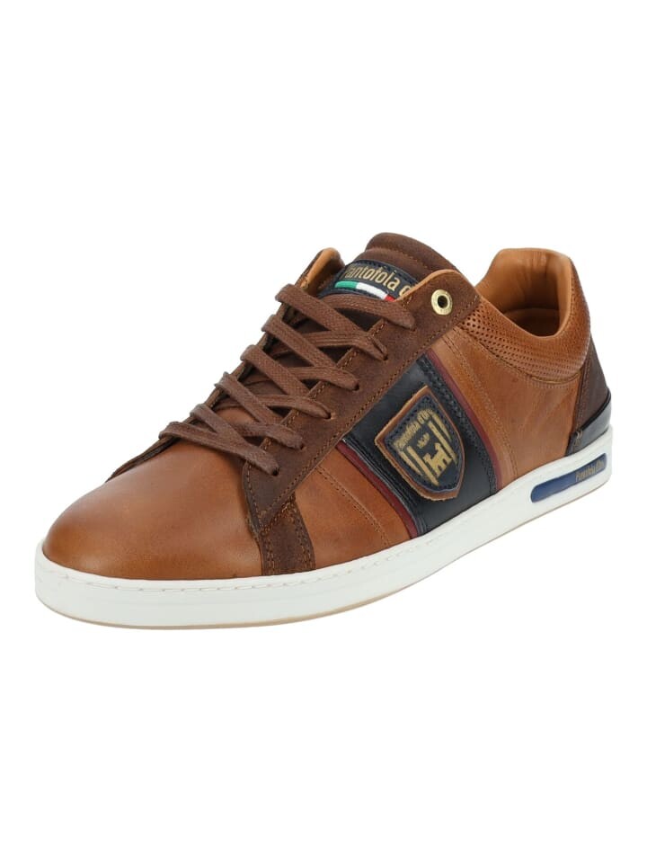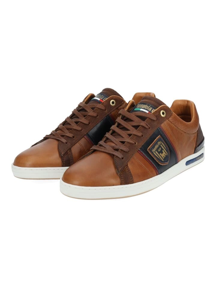 Кроссовки Pantofola d Oro из тисненой кожи и текстиля. Яркие аксессуары делают эту спортивную обувь привлекательной, ее можно сочетать со многими нарядами. Мягкий край щиколотки обеспечивает дополнительный комфорт.