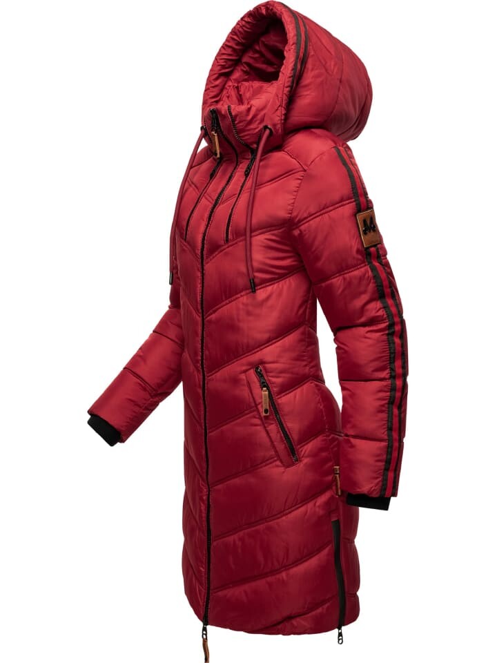 ПОДХОД: Элегантно скроенная зимняя куртка, идеальная длина до колена с боковыми молниями (регулируемая по ширине), идеально подходит для фигуры, спасибо к V-образной стежке