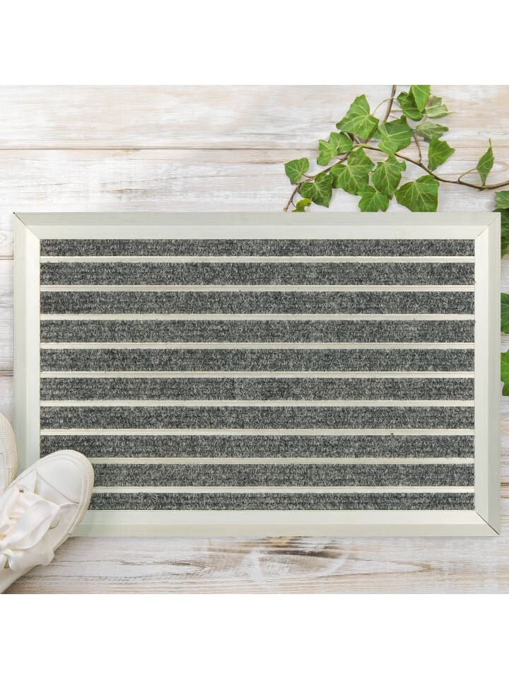 Прочный коврик для грязи с алюминиевой рамой и пластиковыми щетками превращает вытирание грязной обуви в детскую игру. Это значит, что ваша квартира останется чистой, без грязи и отпечатков обуви на полу. Будь то в коридоре или на балконе, практичный коврик можно использовать где угодно, и он остается на своем первоначальном месте благодаря своим нескользящим свойствам. Благодаря простой конструкции алюминиевый коврик идеально вписывается в любую обстановку.