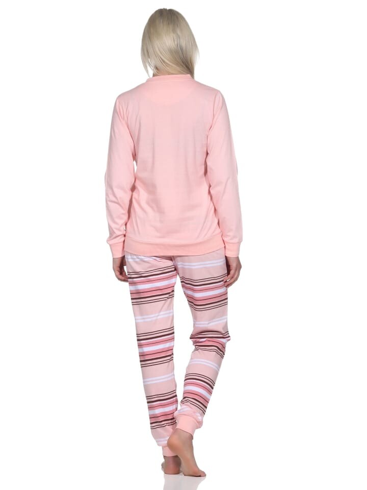 Женская длинная пижама Normann с манжетами и брюками в полоску - также в размерах оверсайз - 223 201 90 236