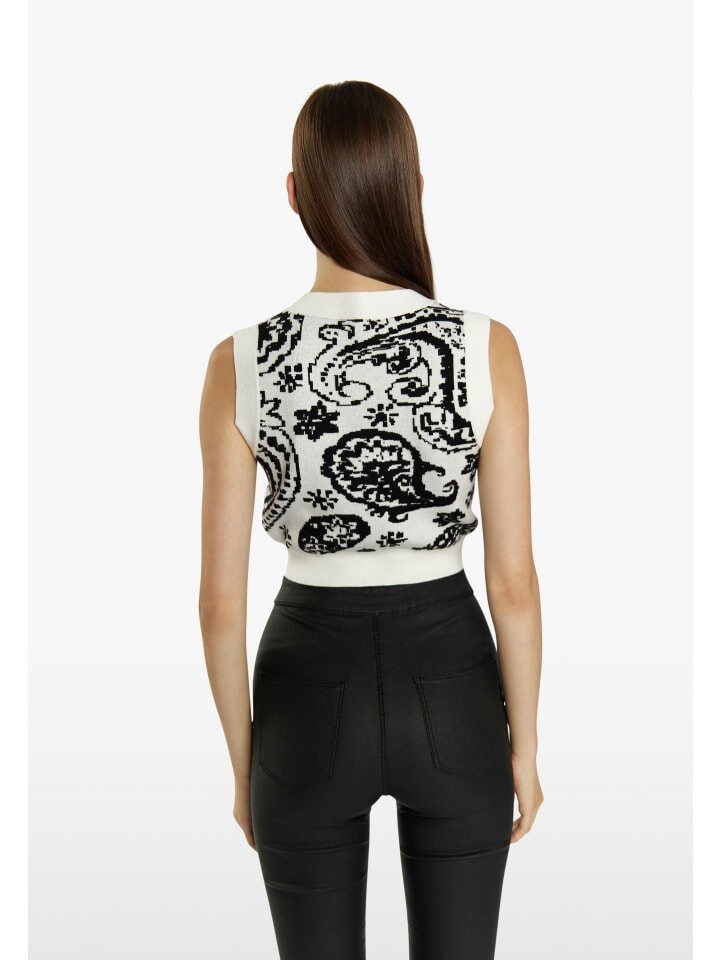 Этот вязаный свитер от myMo ROCKS, один или несколько слоев, принесет глоток свежего воздуха в ваш гардероб благодаря жаккардовому узору с пейсли. Укороченная модель, выполненная из мягкой смеси вискозы, имеет V-образный вырез и благодаря однотонным краям выглядит особенно гармонично. Носите их с брюками с высокой талией или поверх блузки, и вы сможете мгновенно создать свежий образ.