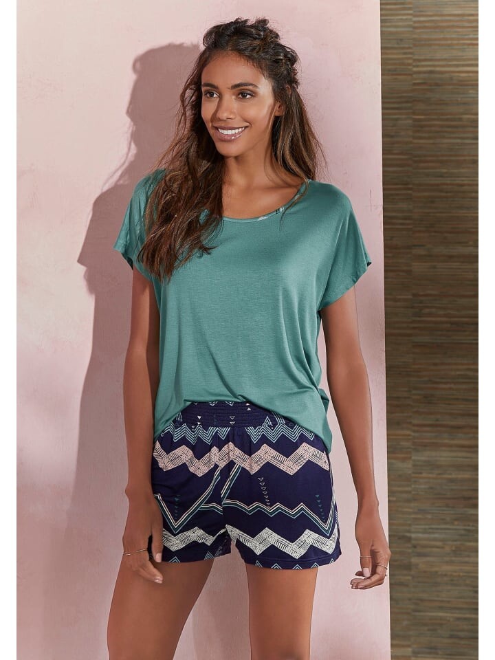 Пижамные шорты со сплошным принтом и небольшими рюшами на эластичном поясе. Приятная вискоза.