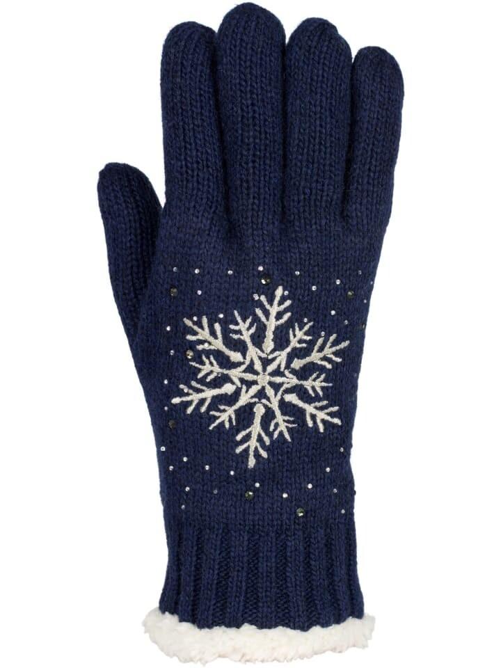 styleBREAKER зимние вязаные перчатки на теплой подкладке с вязаной снежинкой серебристого цвета, аппликацией из стразов и флисом.
