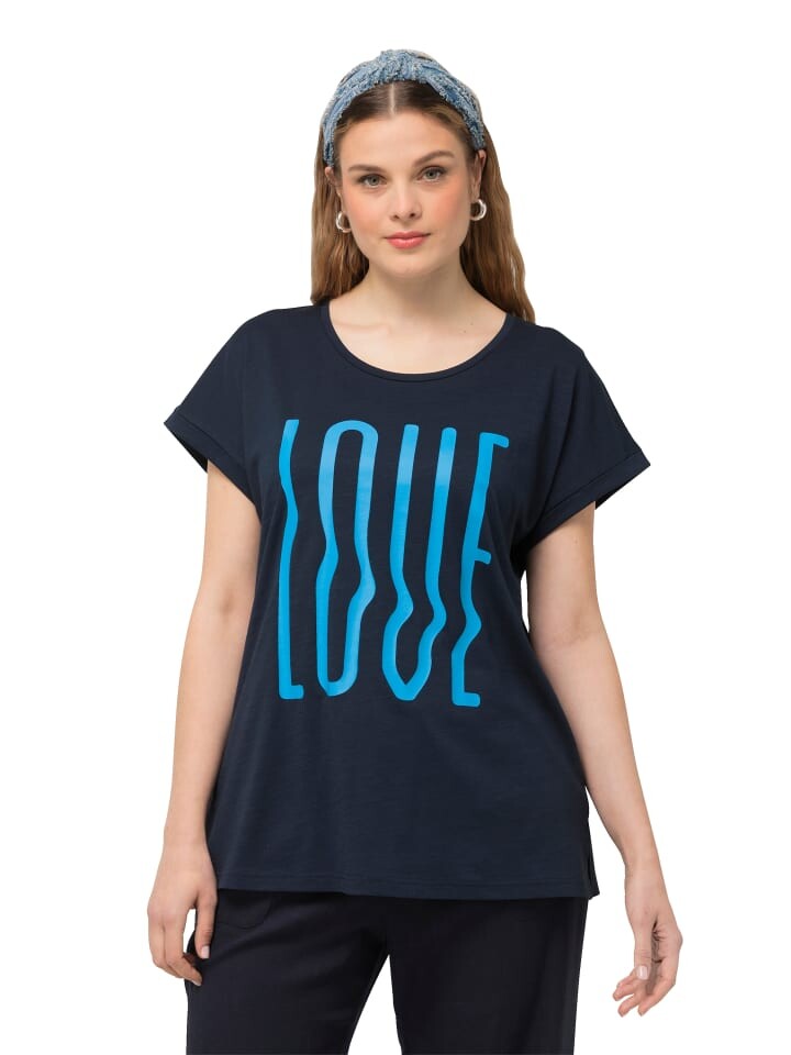 Футболка оверсайз из мягкого трикотажа с тонкой структурой и надписью LOVE. Круглый вырез, заниженная линия плеча, полурукава с манжетами.
