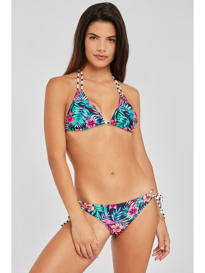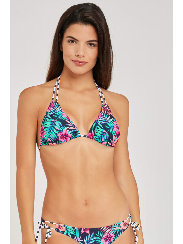 Треугольный верх Венис-Бич. Регулируемый, со съемными чашками. В 2-х вариантах: с цветочным принтом или полностью в полоску. Внешний материал: 80 % полиамид, 20 % эластан LYCRA XTRA LIFE. Подкладка: 100% полиэстер