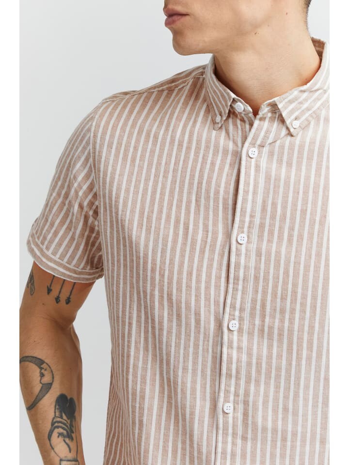 ДЕТАЛИ И ОСОБЕННОСТИ: Льняная рубашка, отложной воротник на пуговицах, застежка на планку с пуговицами, стандартный крой, тканевая нашивка, закругленный низ, короткие рукава, высококачественный льняной материал, красивые цвета, с полосками или без них
