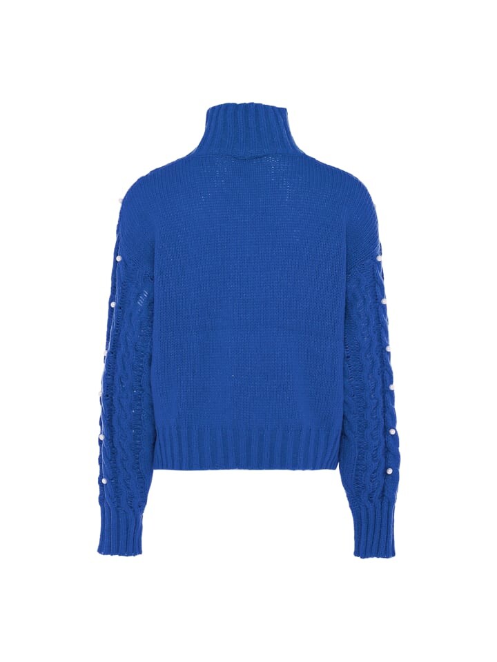 Украсьте свой зимний гардероб этим изысканным вязаным свитером. Классический дизайн водолазки и замысловатая косая вязка придают этому изделию изысканность. Нежные жемчужные украшения украшают переднюю часть и рукава, придавая нотку элегантности. Ребристые манжеты, подол и воротник обеспечивают удобную посадку, сохраняя при этом форму изделия.