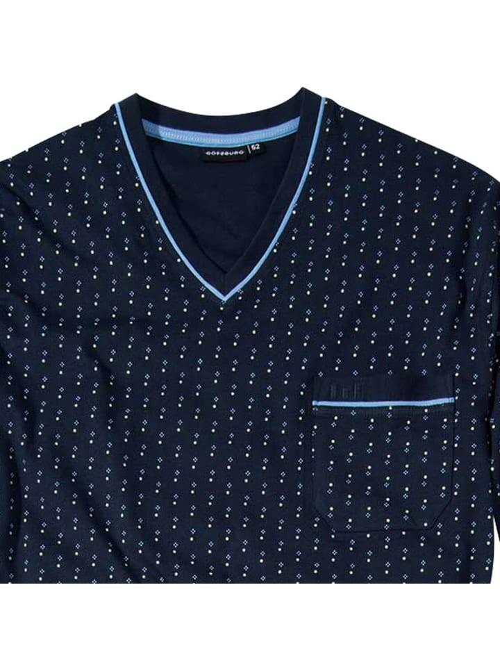 Мужская пижама Götzburg из одинарного джерси. Изысканное ночное белье впечатляет своим превосходным комфортом при ношении и располагает к спокойному сну. Топ с принтом по всей поверхности имеет цветные акценты на V-образном вырезе и нагрудном кармане с вышитым логотипом. Длинные однотонные брюки дополнены притачным эластичным поясом. С манжетами на рукавах, подоле и манжетах на штанинах. Вы будете рады побаловать себя приятным, приятным для кожи и дышащим качеством.