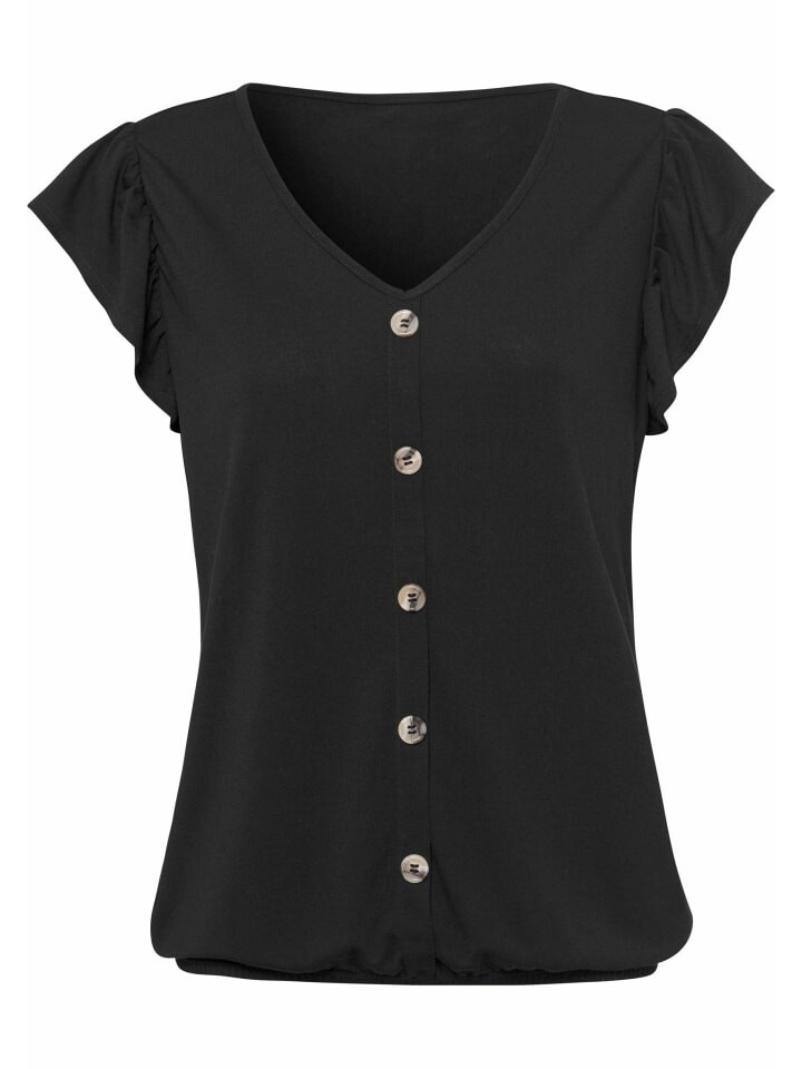 Модная рубашка с воланами в упаковке 2 штуки от Lascana. Короткие рукава-крылышки и пришитая планка с имитацией роговых пуговиц в качестве красивой детали. С резинкой по краю для свободной посадки. Идеально сочетается с джинсами и т. д. Мягкое, струящееся качество с вискозой