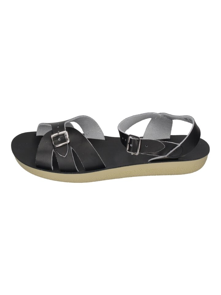 Бренд Salt Water Sandals существует с 1940-х годов. Сандалии Boardwalk черного цвета — новый представитель семейства Salt Water. В эти сандалии Salt Water добавила более мягкую подошву для еще большего комфорта без изменения классического дизайна и большей долговечности. Сандалии можно без проблем носить на море - соленая вода не может повредить сандалиям.