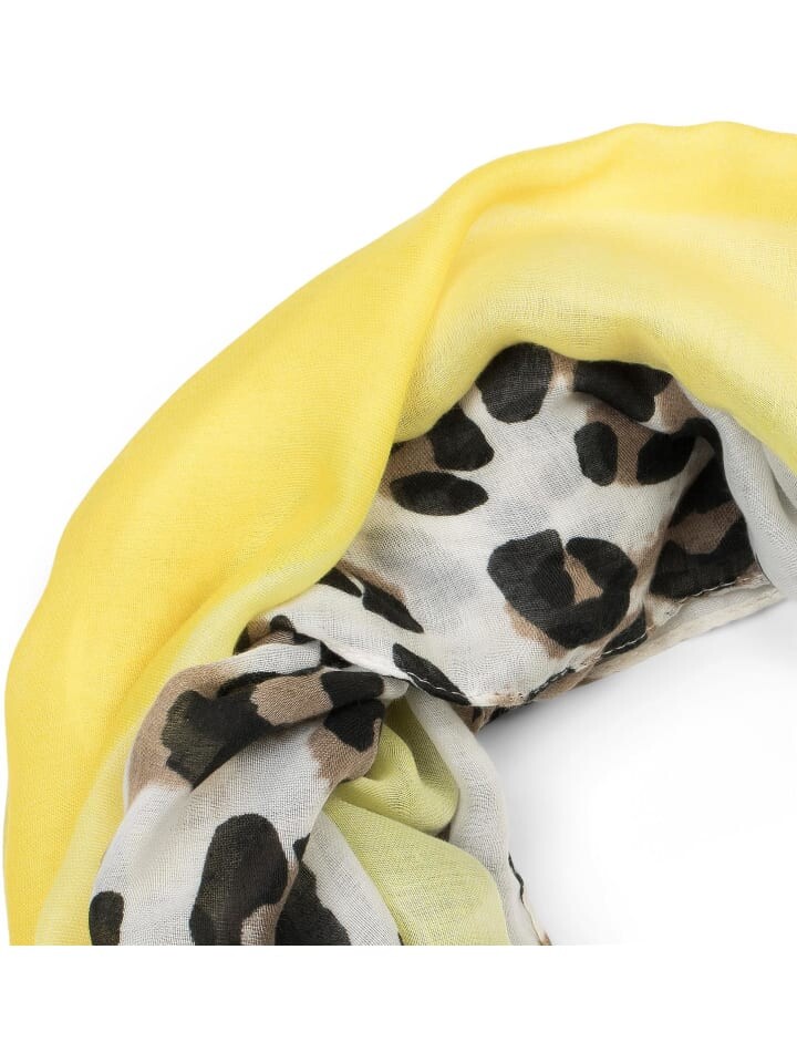 - стильный шарф-труба с леопардовым анималистическим принтом и цветными участками в стиле колор-блоков