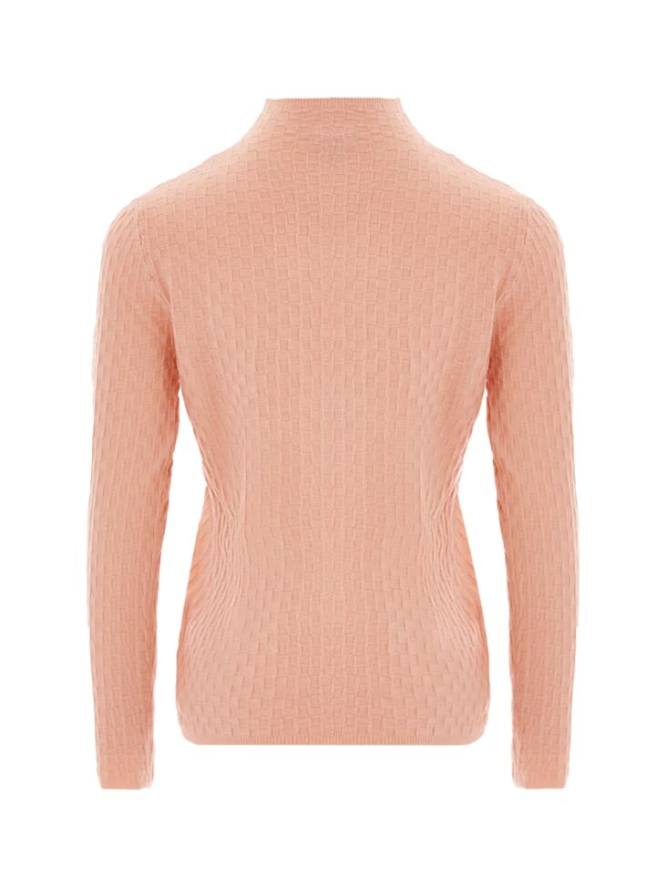 Этот свитер с высоким воротником, созданный для стиля и комфорта, имеет высокий воротник в рубчик, который элегантно складывается. Облегающий силуэт повторяет изгибы тела, а рукава и манжеты украшены соответствующими ребристыми деталями. Этот свитер с прямым подолом, заканчивающимся на уровне талии, и узорчатой тканью идеально подходит для того, чтобы согреться в прохладном климате.