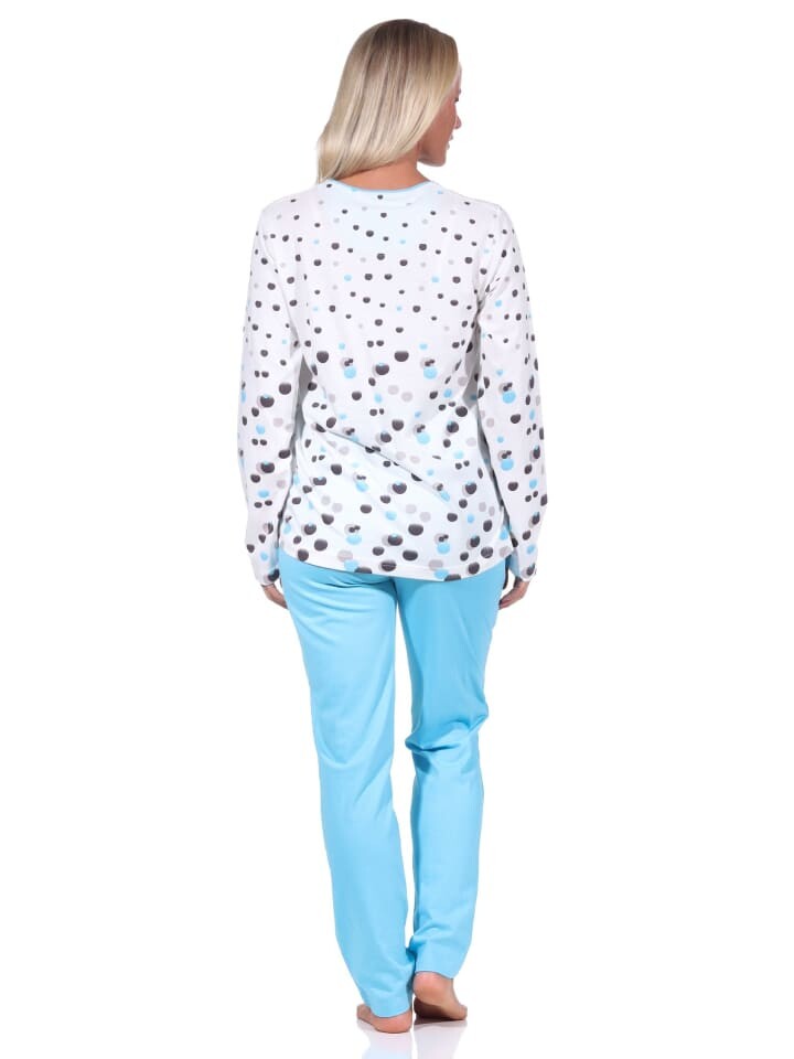 Всегда хорошо одета! Эти женские пижамы с длинными рукавами имеют чудесный освежающий вид в горошек и сочетают в себе великолепный дизайн, радость цвета и комфорт. Брюки этой пижамы однотонные, верх пижамы имеет великолепный летний вид в горошек.
