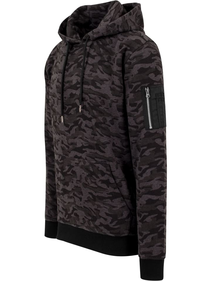 Худи-бомбер Sweat Camo от URBAN CLASSICS привлекает внимание благодаря модному камуфляжному дизайну и нейлоновому карману-бомберу.