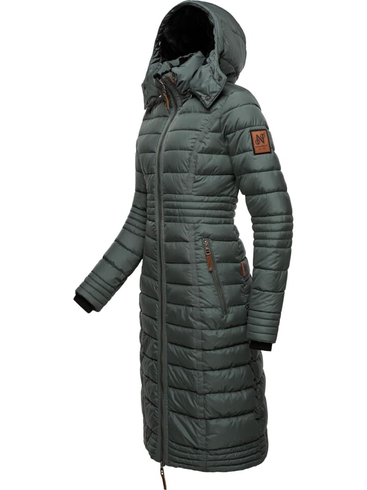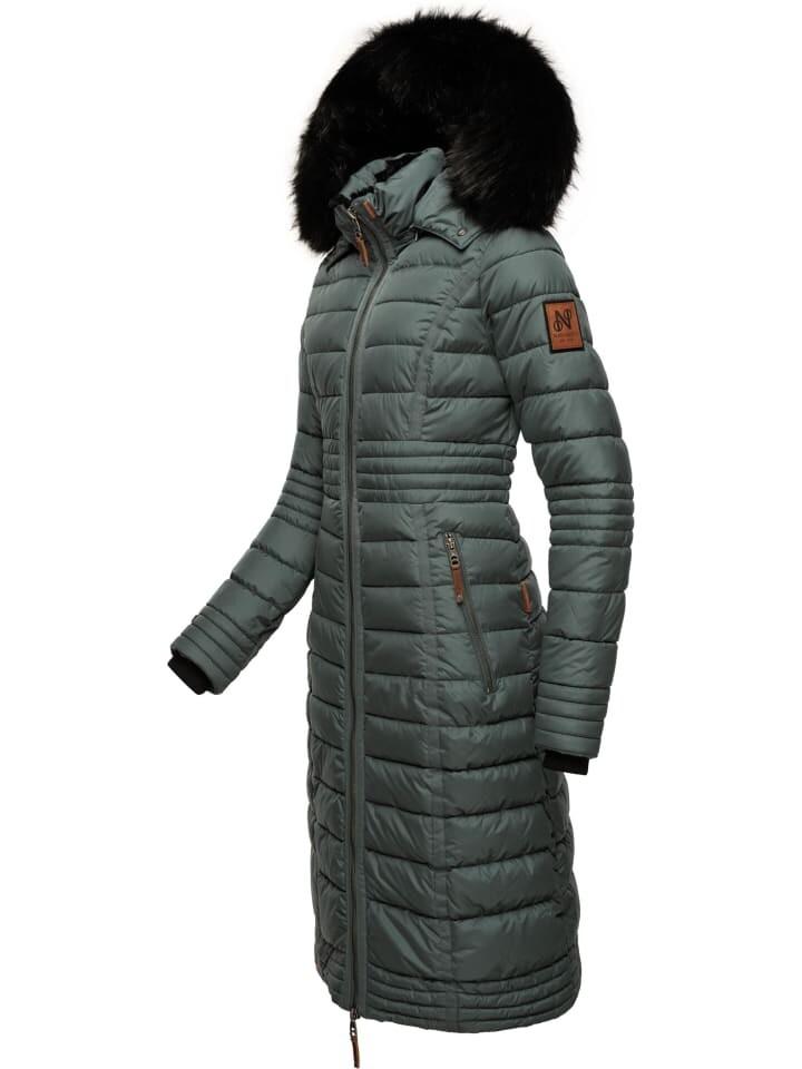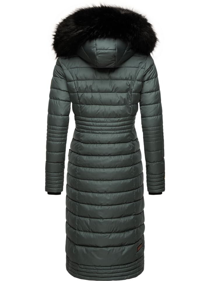 ВИД: Стильное женское зимнее пальто с модной стежкой и контрастным искусственным мехом на капюшоне (съемном). МАТЕРИАЛ: Длинное пальто для отдыха на открытом воздухе из элегантного матового мерцающего внешнего материала с разнообразной стежкой, мягкая внутренняя подкладка и толстая набивка прекрасно сохраняют тепло. для холодных дней