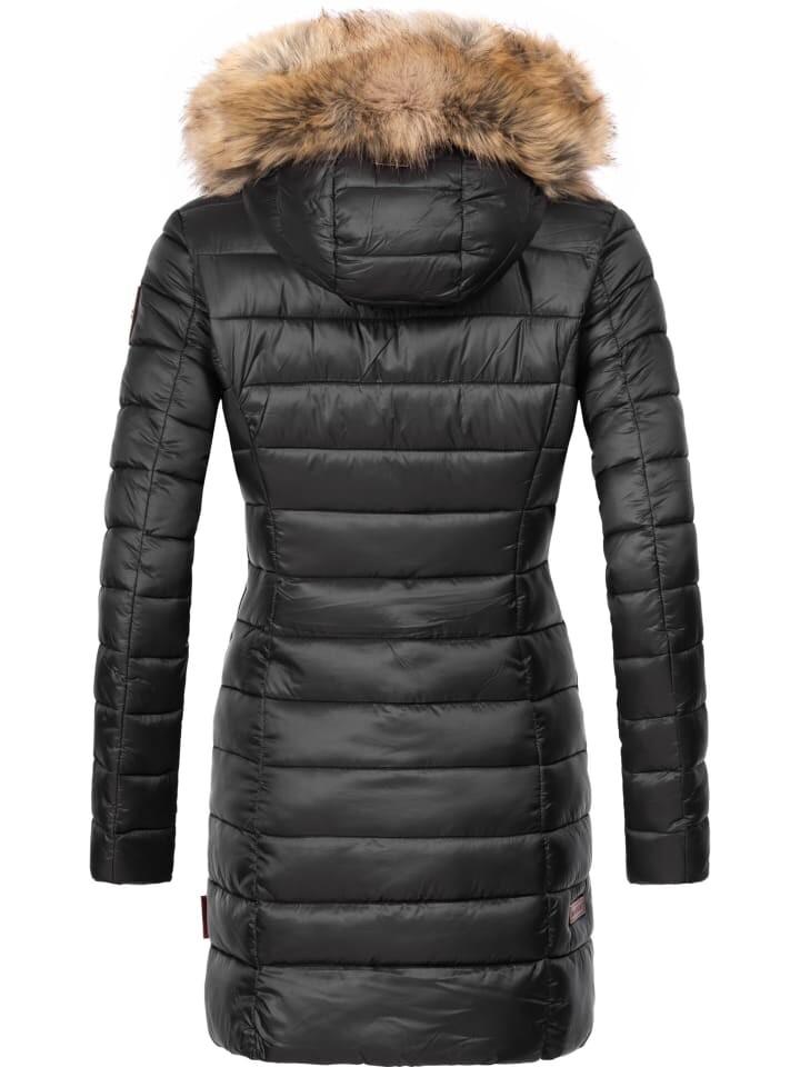 МАТЕРИАЛ: Стеганое пальто с матовым мерцающим внешним материалом, высокий комфорт при ношении благодаря мягкому и мягкий материал, пушистый теплый искусственный мех на капюшоне