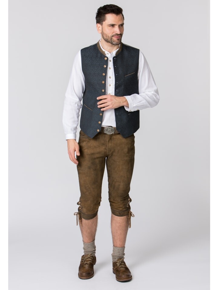 Традиционный жилет Elvio от Stockerpoint Classics воплощает вечную элегантность. Этот классический традиционный жилет выполнен из высококачественной структурной ткани тонкого плетения. Характерный воротник-стойка и контрастная по цвету окантовка из дубленой кожи дикой козы придают этому жилету неповторимый шарм. Классический прямой крой обеспечивает отличную посадку и удобную посадку. Спинка изготовлена из высококачественной хлопчатобумажной ткани в полоску и регулируется с помощью планки. Роговые пуговицы в деревенском стиле искусно дополняют элегантный внешний вид. Этот традиционный жилет идеально гармонирует с нашими традиционными рубашками и является незаменимым элементом классической традиционной моды.