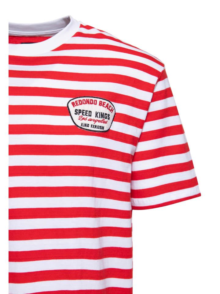 Ощутите морское очарование с полосатой футболкой King Kerosin в бретонском стиле. Эта классическая футболка из чистого хлопка просто необходима всем, кто любит неподвластный времени образ. Футболка впечатляет своими бретонскими полосками и удобным круглым вырезом. Особой изюминкой является нашивка на груди с надписью «Redondo Beach-Speed Kings — Los Angeles», которая придает рубашке непринужденный и стильный вид. Эта футболка — настоящая классика, идеально подходящая для непринужденного морского отдыха. смотреть. Он также доступен в женском варианте, так что вы можете появиться в партнерском образе.