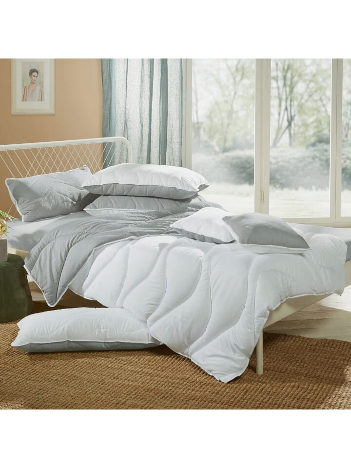 Эрвин Мюллер мягкая подушка "Ампер". Мягкая подушка станет идеальным наполнителем для вашей декоративной наволочки, а также обеспечит удобную поддержку во время чтения и отдыха. Он покрыт фантастически мягким чехлом из микрофибры, изготовленным из гладкой шелковистой ткани. У него серая летняя сторона из сирсакера и гладкая белая зимняя сторона, напоминающая бархатистую кожуру персика. Мягкий, приятный наполнитель из силиконизированных полых волокон обеспечивает оптимальное удаление влаги и создает прекрасные условия для сна. За ним легко ухаживать, его можно стирать, он не вызывает аллергии. С ленточной окантовкой по всему периметру. Наполнитель: силиконизированное полое волокно, 100 % полиэстер