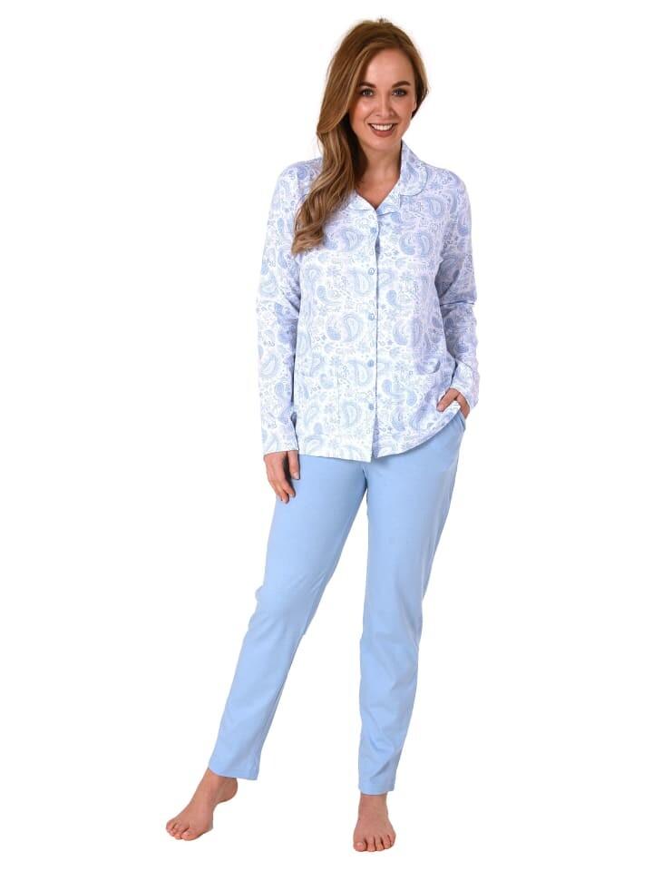 Классика среди пижам, в которой вы всегда будете хорошо одеты. Верх пижамы имеет элегантный узор пейсли и может быть застегнут, однотонные брюки пижамы идеально сочетаются с ним.