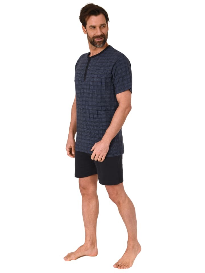 Эта пижама Shorty изготовлена из мягкого и эластичного одинарного трикотажа и имеет удобный вырез Henley, который легко надевать и Пижаму «снять» облегчает ношение, а планка с пуговицами на шее обеспечивает оптимальный комфорт при ношении. Материал пижамы изготовлен из чистого хлопка, который удобен в носке и прекрасно лежит на коже.