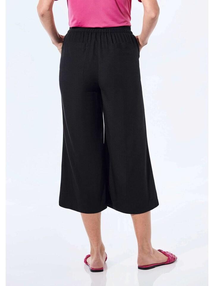 Брюки из воздушной, легкой вискозы. Идеально подходит для теплых дней, обеспечивает максимальный комфорт и приятное ощущение на коже. Удобный эластичный пояс позволяет легко надевать и снимать, а боковые и задние карманы не только практичны, но и расставляют стильные акценты. Укороченная длина придает брюкам современный вид. Ширина низа около 67 см.