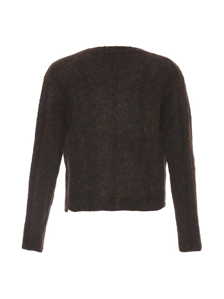 Кардиган Джалин с планкой на пуговицах сбоку привлекает внимание. Непринужденный меланжевый узор также придает куртке удачный вид.