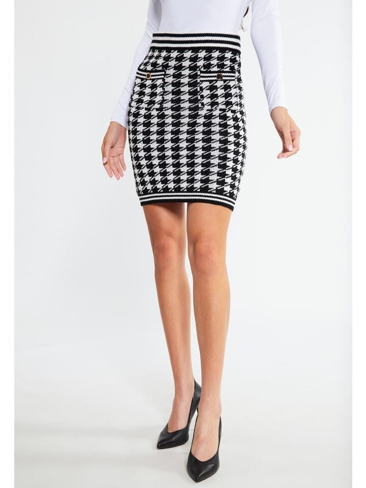 Мини-юбка Faina выполнена из мягкой вискозной пряжи и украшена узором «гусиные лапки». Декоративные пуговицы на карманах дополняют цвет трикотажа. Эластичный пояс, полоски на карманах и завершающая полоска на подоле юбки создают отличный контраст и придают дизайну живости.