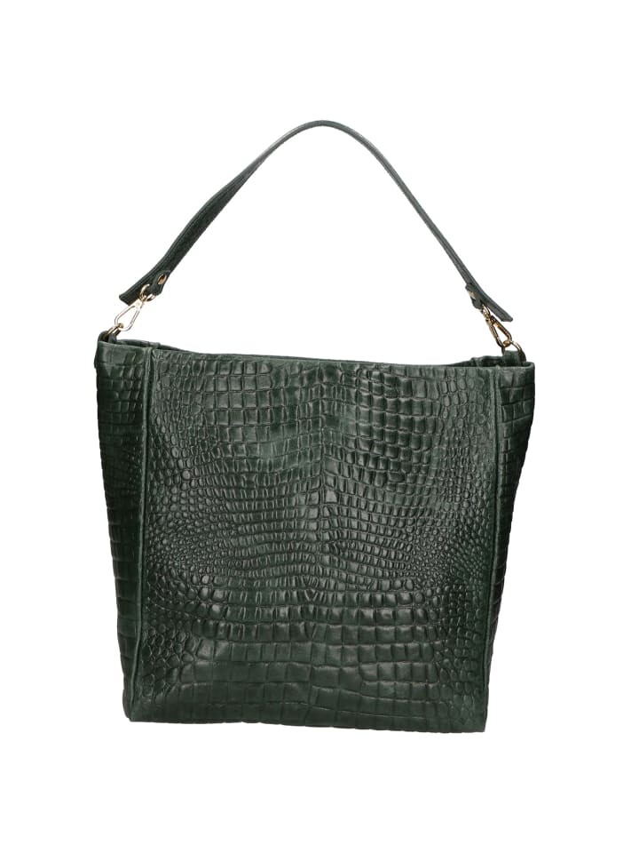Женская сумка через плечо из натуральной кожи с тиснением под крокодила. Оснащен съемным и регулируемым плечевым ремнем. Итальянский продукт ручной работы. Сделано в Италии 32x31x15