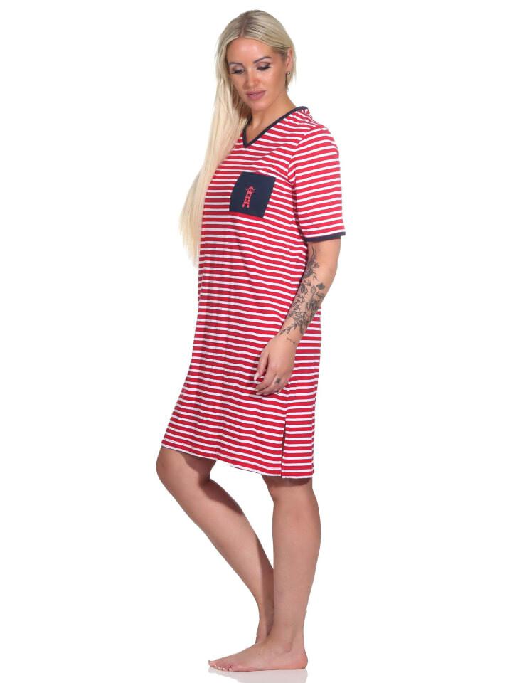 Морская полосатая рубашка сочетается с одеждой для сна и вызывает желание отправиться на море! Вот почему вы всегда будете хорошо одеты с этой летней женской ночной рубашкой с короткими рукавами в морском стиле от Normann, потому что эта рубашка для сна — идеальный выбор, если вам нравится одежда в морском стиле.