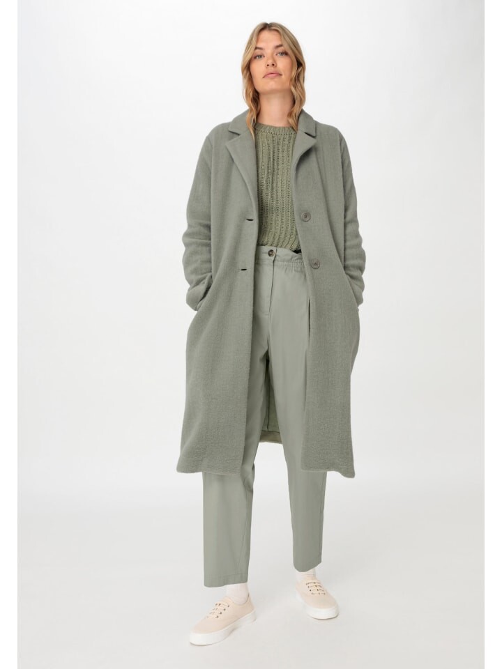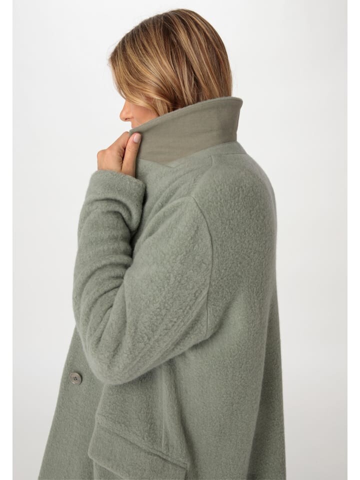 Уютное, легко комбинируемое и абсолютно органическое: благодаря содержанию органического хлопка пальто из натурального флиса с воротником с лацканами выполнено из более легкой смеси материалов, которая обеспечивает приятное тепло и уравновешивает влажность. С пуговицами корозо и двумя карманами с клапанами, но вишенкой на торте являются закругленные боковые разрезы.