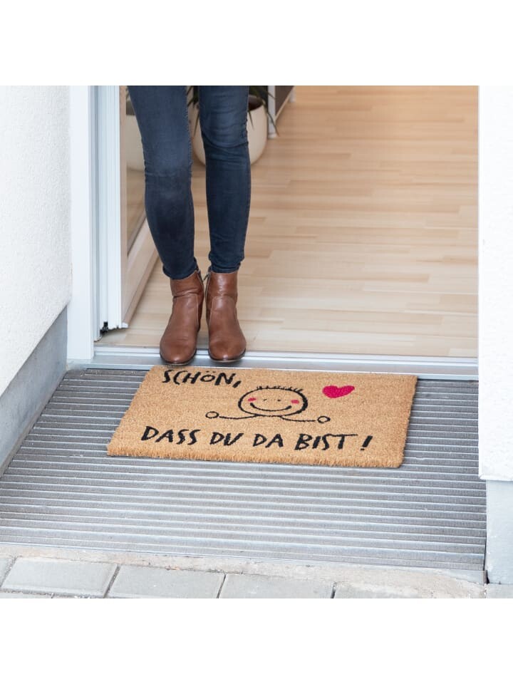 С помощью этого оригинального коврика вы сможете вызвать улыбку на лицах ваших гостей еще до того, как они откроют дверь. Но дверной коврик не просто радует своим гостеприимством. Натуральные кокосовые волокна делают дверной коврик прочным и долговечным. Экологически чистое сырье отличается атмосферостойкостью и придает коврику естественный вид. Нижняя сторона изготовлена из нескользящего ПВХ, поэтому коврик для обуви остается на своем первоначальном месте. Используйте коврик в доме и в саду или подарите своим друзьям креативный прием гостей.