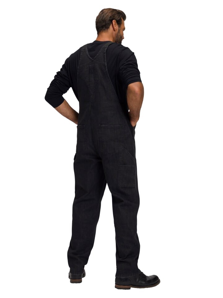 Комбинезон из джинсовой ткани со множеством карманов. Регулируемые бретели и бока с эластичными вставками. Свободный пояс, широкая брючина, широкая стопа.