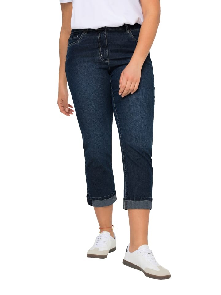Джинсы Amy 7/8, прямого кроя, с комфортной эластичностью и отворотом по низу. Прямые и удобные 5 карманов. Пояс с петлями для ремня, пуговицей и молнией.
