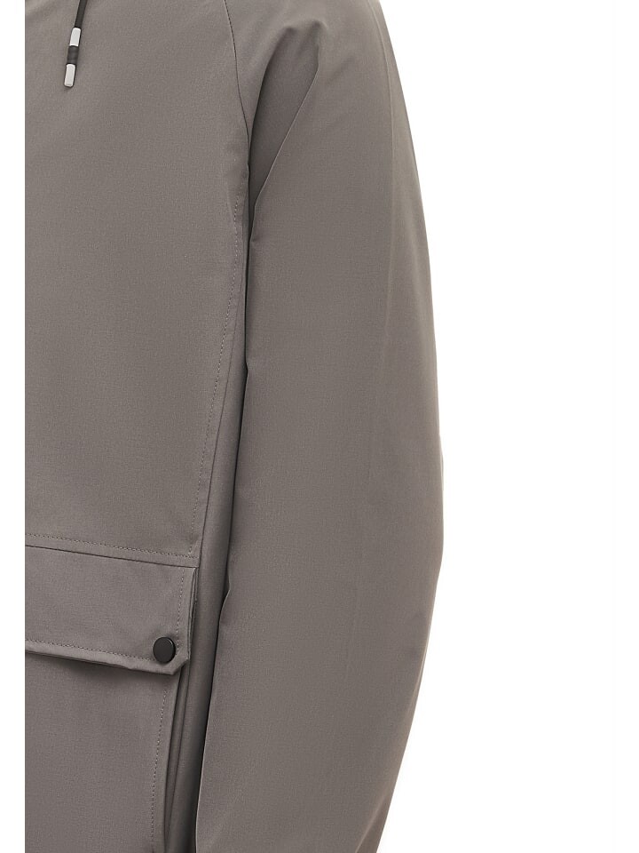 Эта куртка с капюшоном на шнурке оснащена передней застежкой-молнией для удобства переноски. Длинные рукава оснащены эластичными манжетами для удобной посадки. Два кармана с клапанами на уровне талии обеспечивают практичное место для хранения вещей. Эта куртка, идеально подходящая для повседневной носки или активного отдыха, органично сочетает в себе простоту и функциональность.