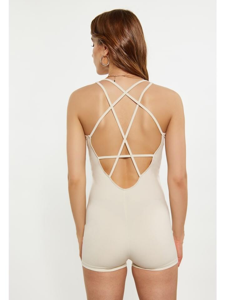 Подчеркните свой силуэт с помощью этого элегантного цельного предмета одежды. Модель без рукавов и круглый вырез добавляют современности, а смелый узор на ремешках крест-накрест сзади добавляет художественного стиля. Этот цельный спортивный костюм обеспечивает защиту и свободу движений при различных видах деятельности. Идеально подходит для динамичных занятий, таких как танцы и гимнастика.