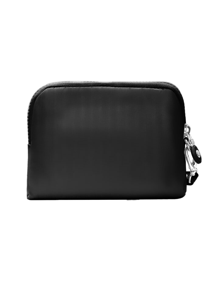 Эта элегантная сумка имеет уникальную вытянутую прямоугольную форму с закругленными углами и фактурной поверхностью. Привлекательный круглый логотип, тисненый в центре, добавляет изысканности. Оснащен практичной металлической застежкой-молнией, которая обеспечивает легкий доступ к вашим вещам. Съемный ремешок на запястье с металлическим карабином обеспечивает универсальные возможности ношения в дороге.