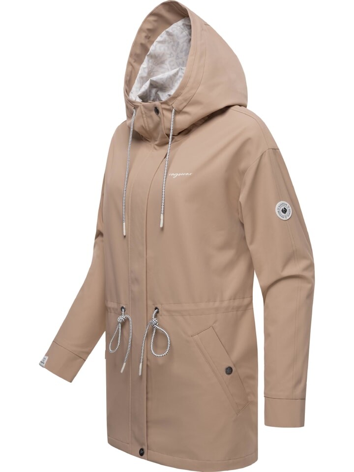 ВИД: Спортивное, водонепроницаемое женское полупальто с регулируемым по ширине капюшоном от популярного городского трендового лейбла Ragwear — идеально подходит для активного отдыха, например, пеших прогулок, прогулок или кемпинга. ЭКОНОМИЧЕСКИЙ МАТЕРИАЛ: Материал переходной куртки — настоящий универсальный вариант: дышащая (5000 г/кв. м/24 часа), ветро- и водонепроницаемая, с водяным столбом 11 000 мм, а также изготовлена из переработанных материалов. ПОДХОДИТ: всепогодная куртка очень удобного прямого кроя, которую можно регулировать по желанию с помощью завязок на талии, а также капюшон, который можно регулировать с помощью шнурков и длину верха выше низа