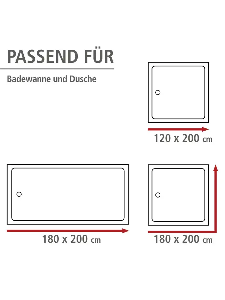 Особенно практично: к верхнему краю прикреплено встроенное подвесное устройство с гибкими кольцами, которое позволяет быстро и легко повесить занавеску на штангу для душа или ванны. Внизу находится грузовая лента из экологически чистой резины (вместо свинца).