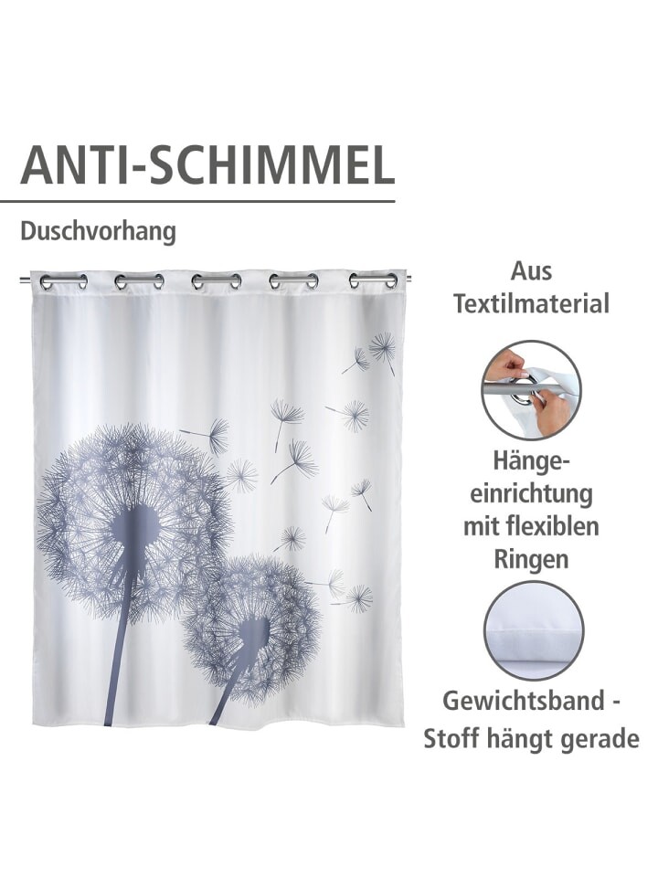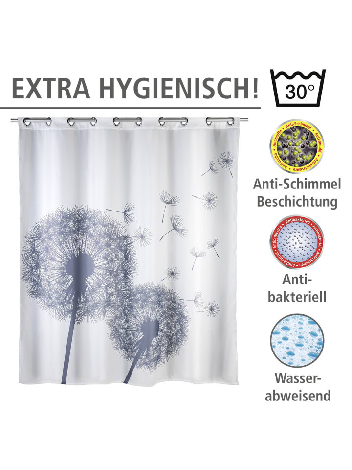 Тщательный принт с красивым рисунком одуванчика придает ванной комнате больше стиля и цветочной элегантности, а ширина 180 см подходит как для душа, так и для ванны.