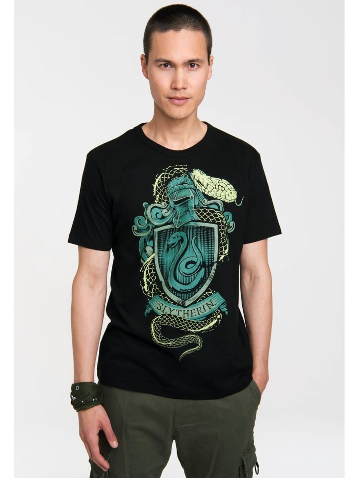Логотип Слизерина — футболка «Змея» от Logoshirt черного цвета с принтом знаменитого герба Дома Слизерина. Футболка – настоящий must-have для поклонников Гарри Поттера. У него идеальный крой – повседневный, но не слишком свободный – и он прекрасно сочетается. Благодаря качественной трафаретной печати в ретро-стиле принт выглядит как оригинал из 60-х годов. Благодаря предварительной усадке рубашка легкого кроя сохраняет форму даже после нескольких стирок. Футболка с логотипом Слизерина изготовлена из 100% высококачественного хлопка. Бренд Logoshirt – это аутентичный дизайн, высокое качество и оригинальность. Используются только лицензионные оригинальные дизайны.