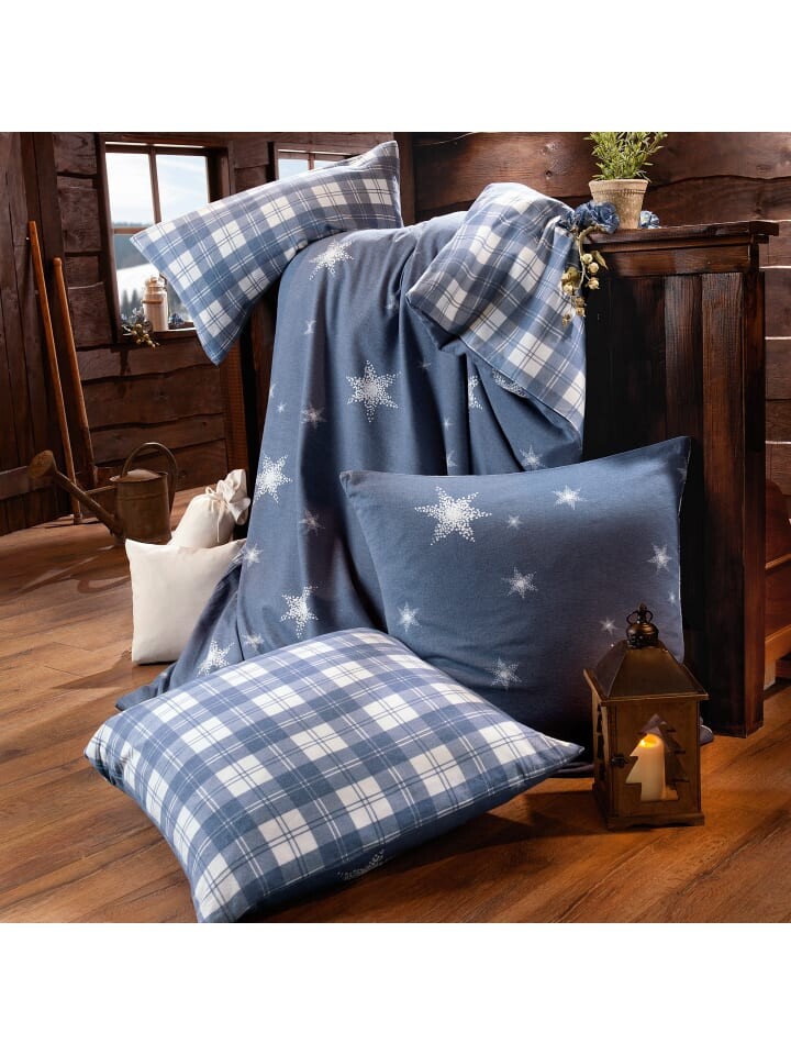 Двустороннее постельное белье Dormisette из тонкой фланели. Классическая клетка или вы предпочитаете сияющие звезды? Гармоничное постельное белье можно крутить и переворачивать как угодно и как угодно. Вы с удовольствием устроитесь в уютном, теплом постельном белье, оно удивительно мягкое и бархатистое на ощупь. Его ткань с начесом особенно приятна для кожи, пропускает воздух и регулирует температуру, обеспечивая прекрасный комфорт во время сна. Легко надевается благодаря практичной молнии.