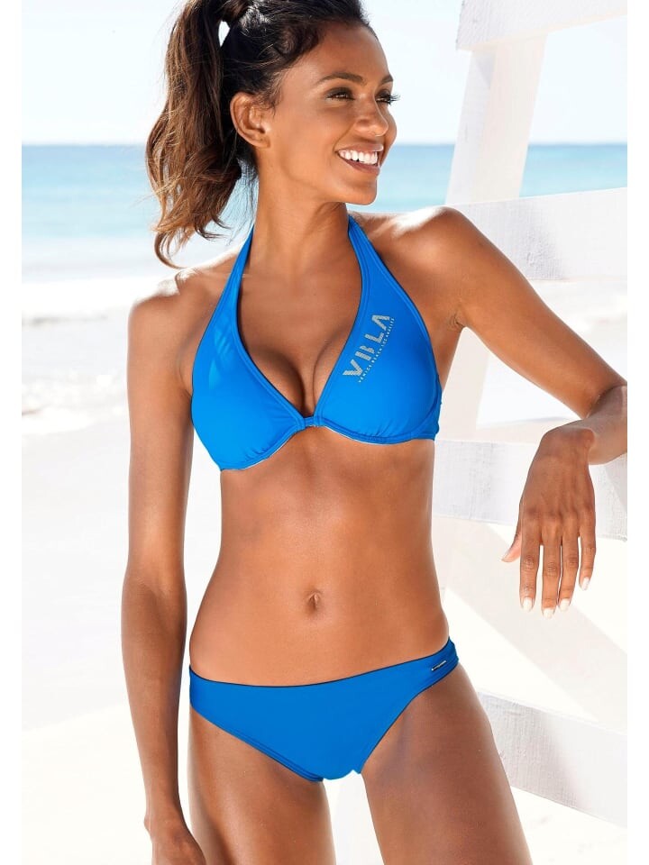 Стильное бикини на косточках от Venice Beach. С крупным принтом и встроенной гладильной. Верх можно завязать на шее и закрыть сзади. Со съемными чашками. Брюки с узкими боковыми швами и небольшой эмблемой. Комфортное качество.