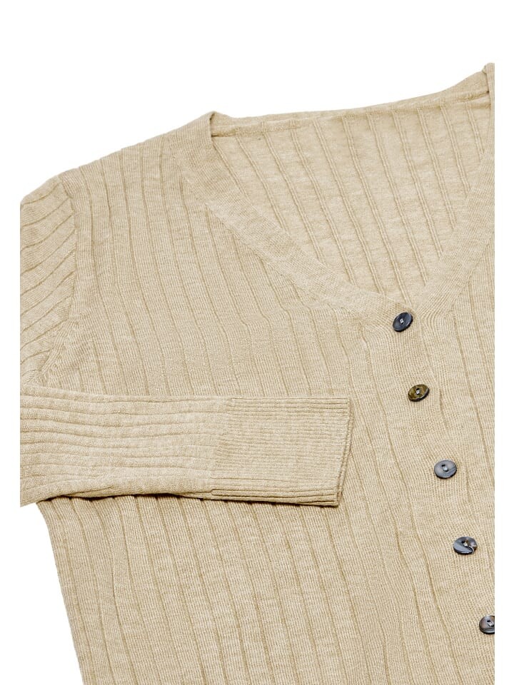 Порадуйте себя привлекательностью этого вязаного кардигана с ребристой текстурой и классическим V-образным вырезом. Передняя планка имеет вертикальное расположение пуговиц, что придает ей дополнительный шарм. Благодаря облегающим ребристым манжетам и нижней кромке эта верхняя одежда удобно смотрится поверх других предметов одежды. Мягкая эластичная ткань обеспечивает комфорт, а длинные рукава добавляют тепла вашему ансамблю.