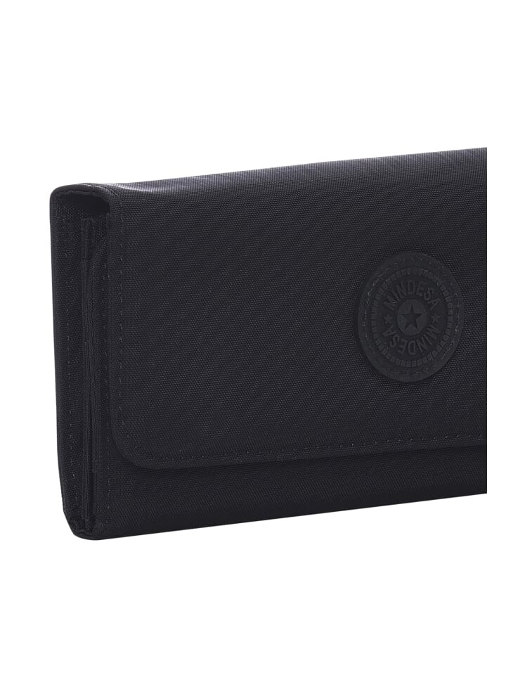 Этот прямоугольный кошелек, изготовленный с высокой точностью, имеет застежку-клапан и текстурированную отделку, что свидетельствует о высоком качестве изготовления. Простой дизайн имеет видимую строчку по краям для дополнительной структуры. Круглая эмблема спереди придает минималистской эстетике нотку изысканности.