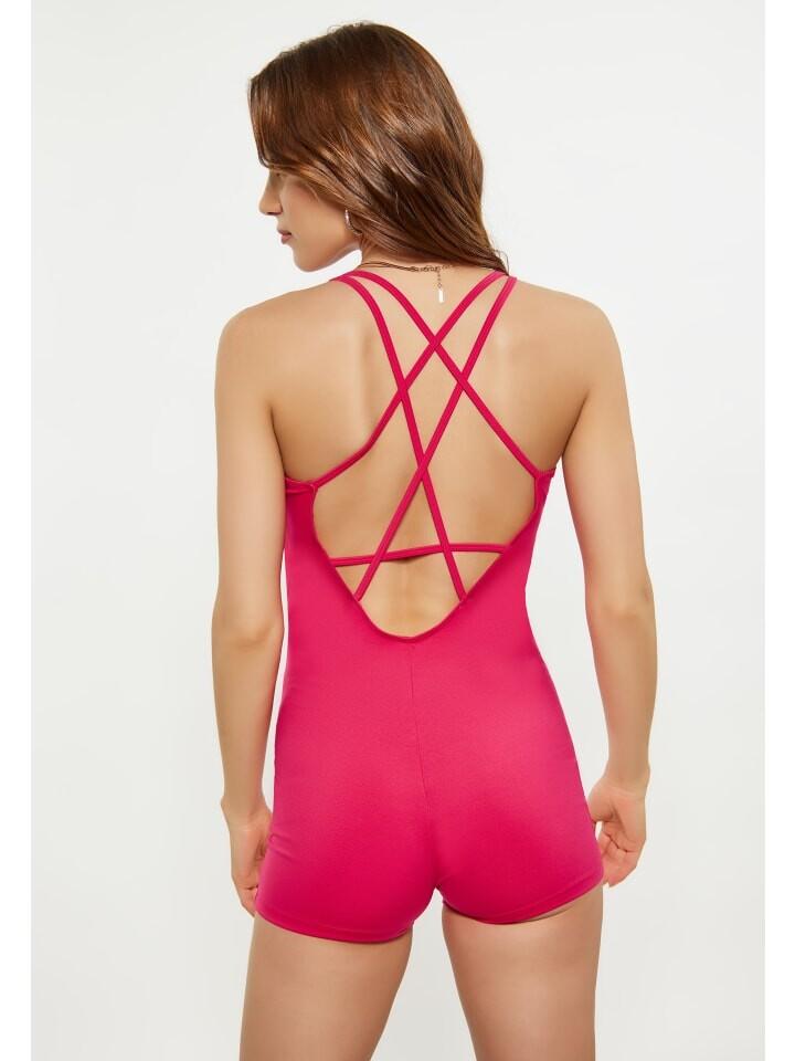 Подчеркните свой силуэт с помощью этого элегантного цельного предмета одежды. Модель без рукавов и круглый вырез добавляют современности, а смелый узор на ремешках крест-накрест сзади добавляет художественного стиля. Этот цельный спортивный костюм обеспечивает защиту и свободу движений при различных видах деятельности. Идеально подходит для динамичных занятий, таких как танцы и гимнастика.