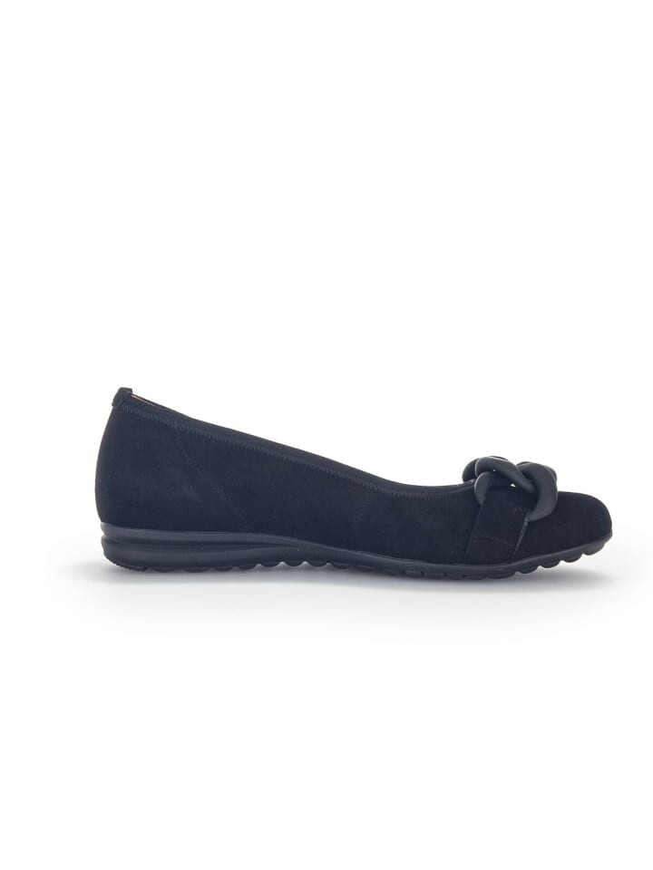Спортивные балетки комфортного бренда Gabor Comfort – это то, что женщинам больше никогда не захочется снимать. Черный верх из структурированной замши делает эту модель экстравагантным выбором. Ширина обуви G означает, что балетки идеально подходят для нормальной женской ноги с шириной выше средней. Балетки линии Comfort имеют больший объем в области подушечки стопы и подъема стопы, а также дополнительное пространство для пальцев ног и обеспечивают устойчивость стопы.