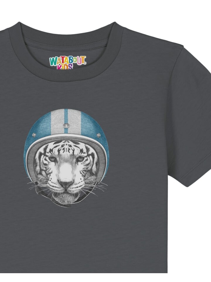 Детская футболка классического кроя с круглым вырезом современного кроя. Эта футболка была изготовлена в справедливых условиях труда и имеет сертификат Fair Wear Foundation и GOTS (Глобальный стандарт органического текстиля, BCS 35828). Используемый органический хлопок также сертифицирован.