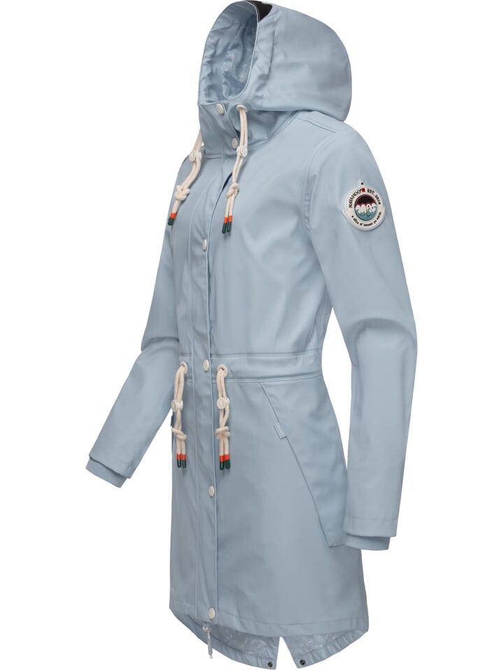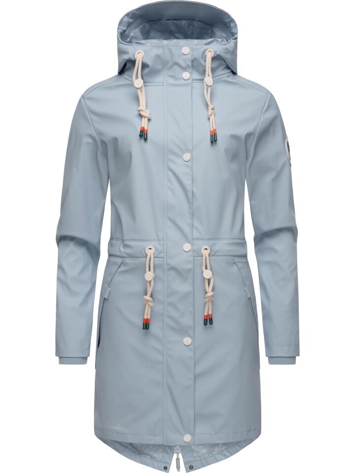 ВИД: Стильное пальто для активного отдыха с большим капюшоном, прорезиненным внешним материалом и множеством стильных деталей от Navahoo. МАТЕРИАЛ: Куртка с эластичным, гладким и водонепроницаемым внешним материалом (прорезиненным), гладкая внутренняя подкладка куртки с цветочным узором доходит до капюшон и оптический. Особенность